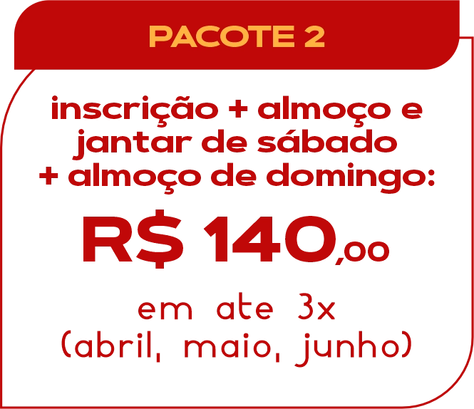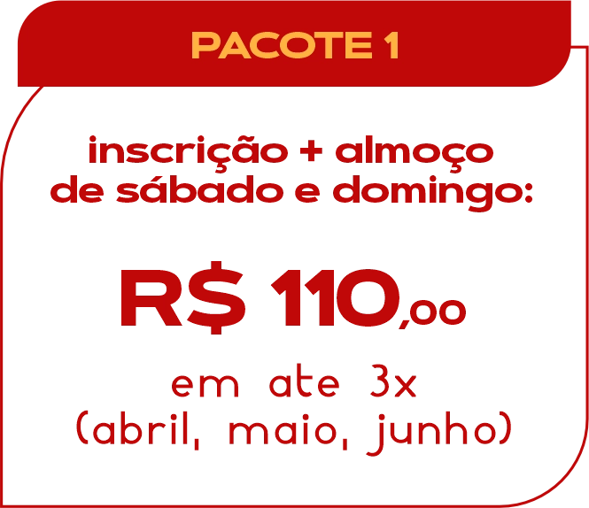 Inscrição + refeição (pacotes 1 e 2) – até 3x